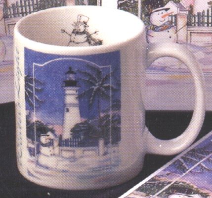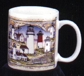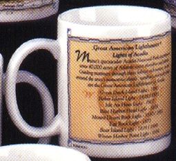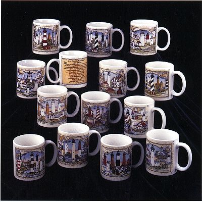 What a beautiful way to start the day! Drinking your first cup of coffee from one of these beautiful coffee mugs, depicting eighteen (18) U.S. lighthouse collages, eleven (11) individual lights plus the 2001 Special Edition Mug, Winter's Island-Key West. These decorative porcelain mugs feature the Sea Chart Light depiction of the collage on the front and a short history of the applicable lights on the back. This coffee mug series is available two ways- as a set of 5, special priced at only $45.50; or individually at only $9.95 each. "NEW"--JUST ARRIVED--Lighthouses of Georgia & Lighthouses of California collages; Currituck Beach, NC: Hilton Head, SC; Old Mackinac Point, MI; Middle Bay, AL; Pensacola, FL; Sand Island, AL Spread the sunshine to your friends-a different gift idea, for everyday pleasure!! Great gift items! Collect them all!!