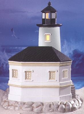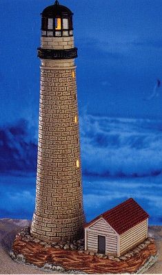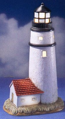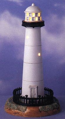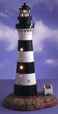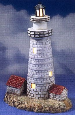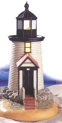 In 2004, Lefton introduced an exciting collection of lighthouses with rotating beacons. This series was worked into the previously existing illuminated lighthouses series, replacing existing lights as they become retired. These magnificent rotating-lighted adaptations are available at only $79.95 each, except for a few special collectibles noted below at the check/box picture. Most of these lights will have a 3-way switch allowing the lighthouse to be lit as either a Rotating Beacon or an Illuminated light.