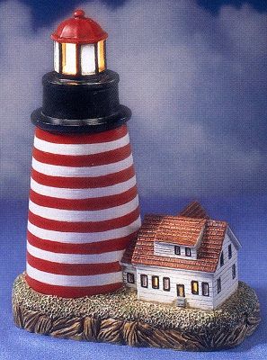 In 2004, Lefton introduced an exciting collection of lighthouses with rotating beacons. This series was worked into the previously existing illuminated lighthouses series, replacing existing lights as they become retired. These magnificent rotating-lighted adaptations are available at only $79.95 each, except for a few special collectibles noted below at the check/box picture. Most of these lights will have a 3-way switch allowing the lighthouse to be lit as either a Rotating Beacon or an Illuminated light. The expanded series of rotating beacons & illuminated lights are 'majestic' examples of architectural splendor, delicately captured in Lefton's Historic American Lighthouse Collection®. Currently, we are offering these one hundred plus (100+) lighted replicas, which are being collected throughout the world--evidence of their universal appeal and recognition of their outstanding service to both the U.S. and world's mariners. Our extensive collection includes both Special Event and Limited Edition lighthouses. These magnificent lighted adaptations are available at only $79.95 each, except for a few special collectibles noted below at the check box / picture. At the current time all lights have been "retired", so there are very small quantities still available for purchase at "new-in the box" condition, therefore, it was necessary to raise prices because of the added cost of acquiring them from other vendors. All of the Rotating Beacon