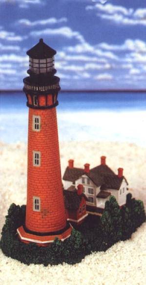 These early additions to Lefton's Historic American Lighthouse Collection® are amazingly well-detailed cold-cast porcelain lighthouses with FLASHING BEACONS. Although smaller in scale than the illuminated lights, they are a "big hit" with collectors around the world. Each comes complete with a replaceable bulb (standard Christmas tree bulb) and runs on two (2) AA Batteries (not included). These outstanding lights are now available at only $34.95 each. This outstanding collection of days past has since been RETIRED & SOLD OUT. However, we are proud to be able to offer you a selected group of the original series in "brand new" condition. Don't miss out on these "true" collector's editions!! "New" Miniature Flashing Beacons In continuing the Lefton