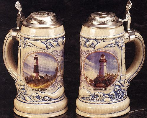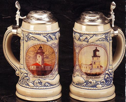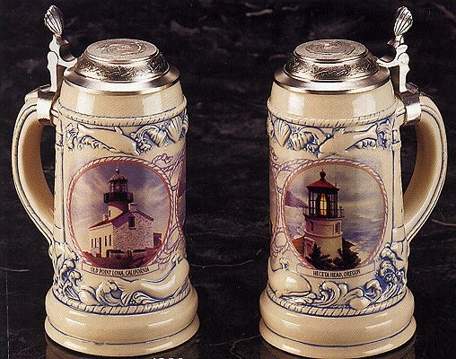 each or the complete set of 5 steins (10 lighthouses), specially priced