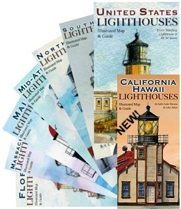 The cartography makes it easy to visualize where all the lighthouses are -- and were. Original watercolor illustrations make these maps delightful keepsakes. The informative guides take you right there. Our United States Lighthouses map gives a sweeping overview of the country's more than 700 standing lighthouses. Each title is available as a folded map or laminated poster. Click on the individual